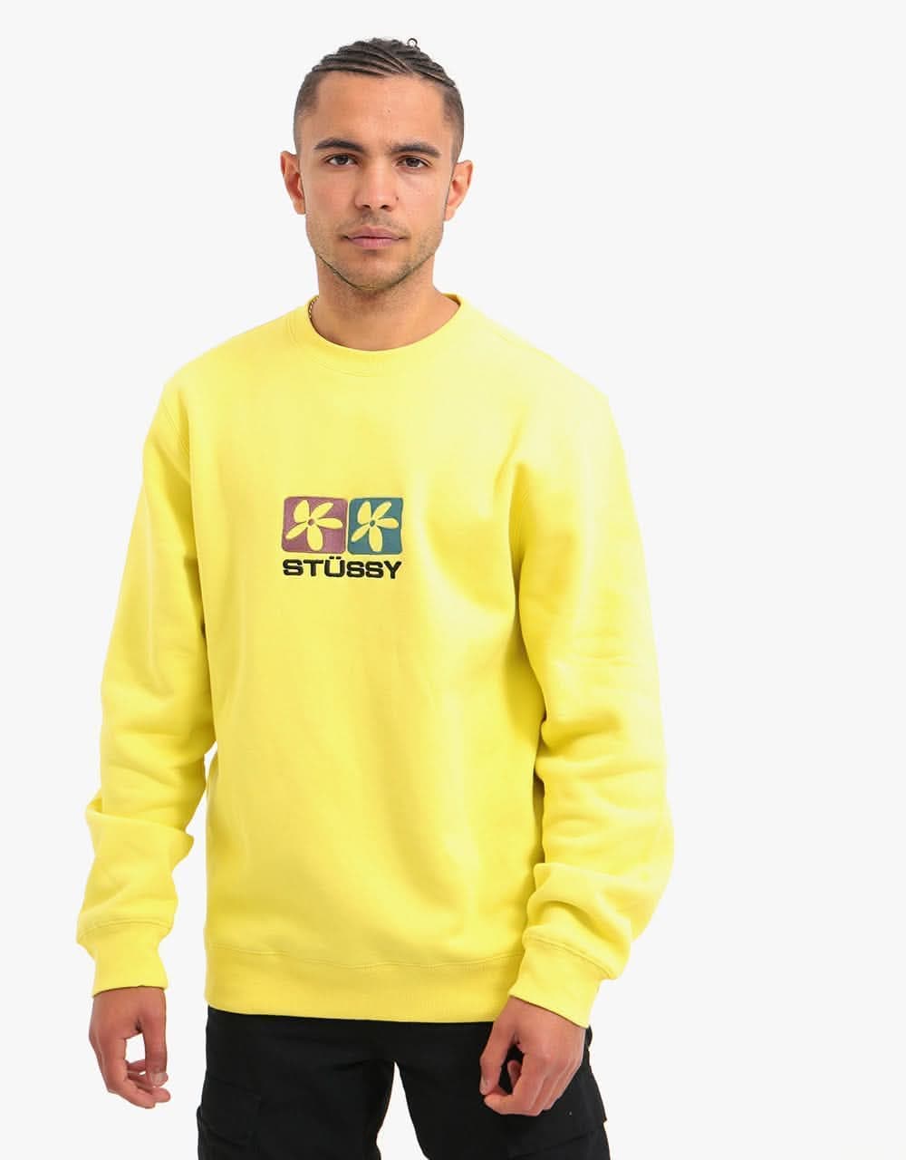 Stussy 2 Flowers Applique Crew Sweatshirt Lemon Route One